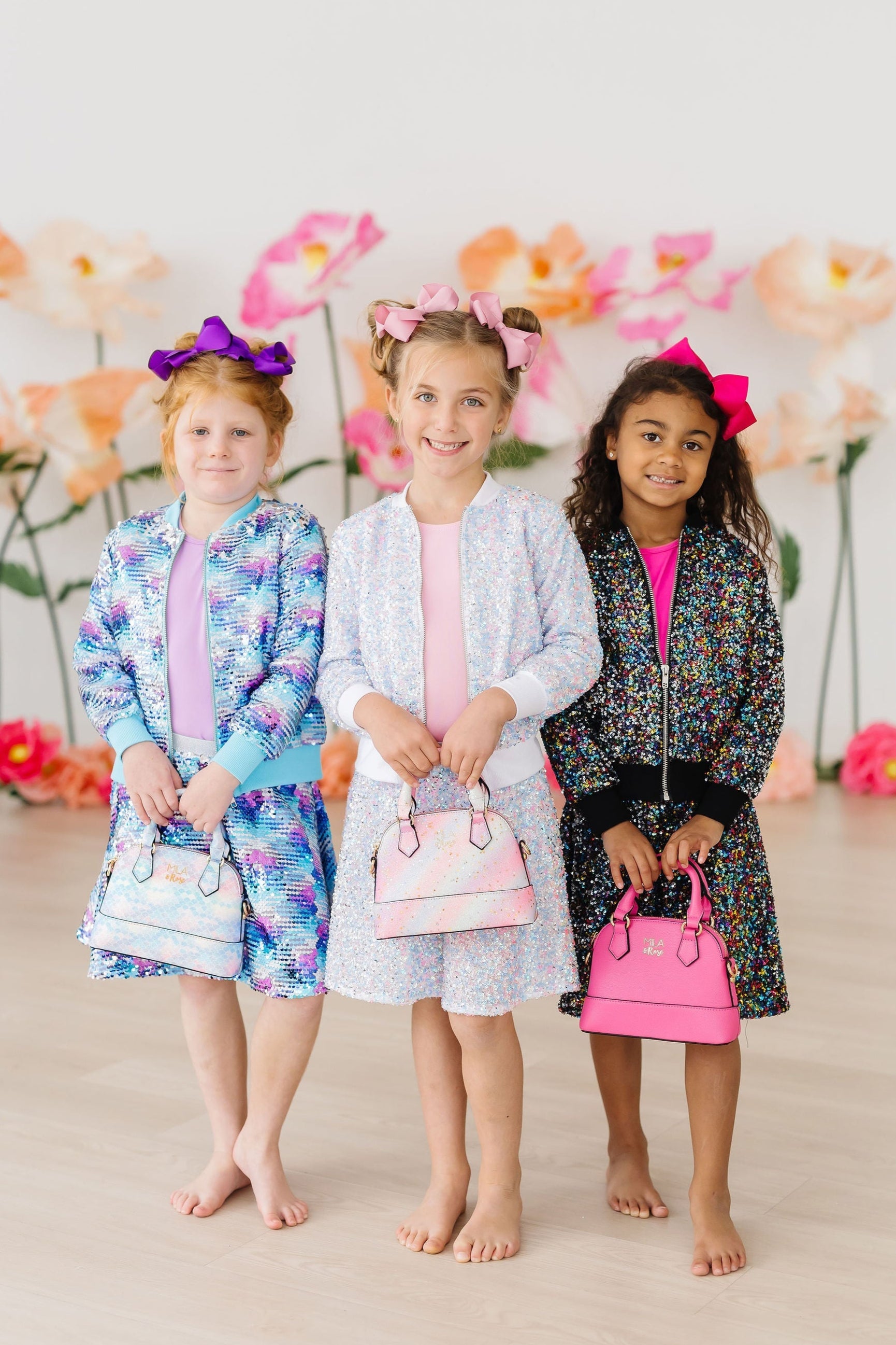 You asked, we listened! Our sequin twirl skirts are back and better than ever, but this time with attached SHORTS. Mix and match with our tees and jackets to sparkle up any outfit! Perfect for birthdays, holidays, and special occasions. This skort adds the perfect amount or shine to any outfit. Also available in a matching Jacket.