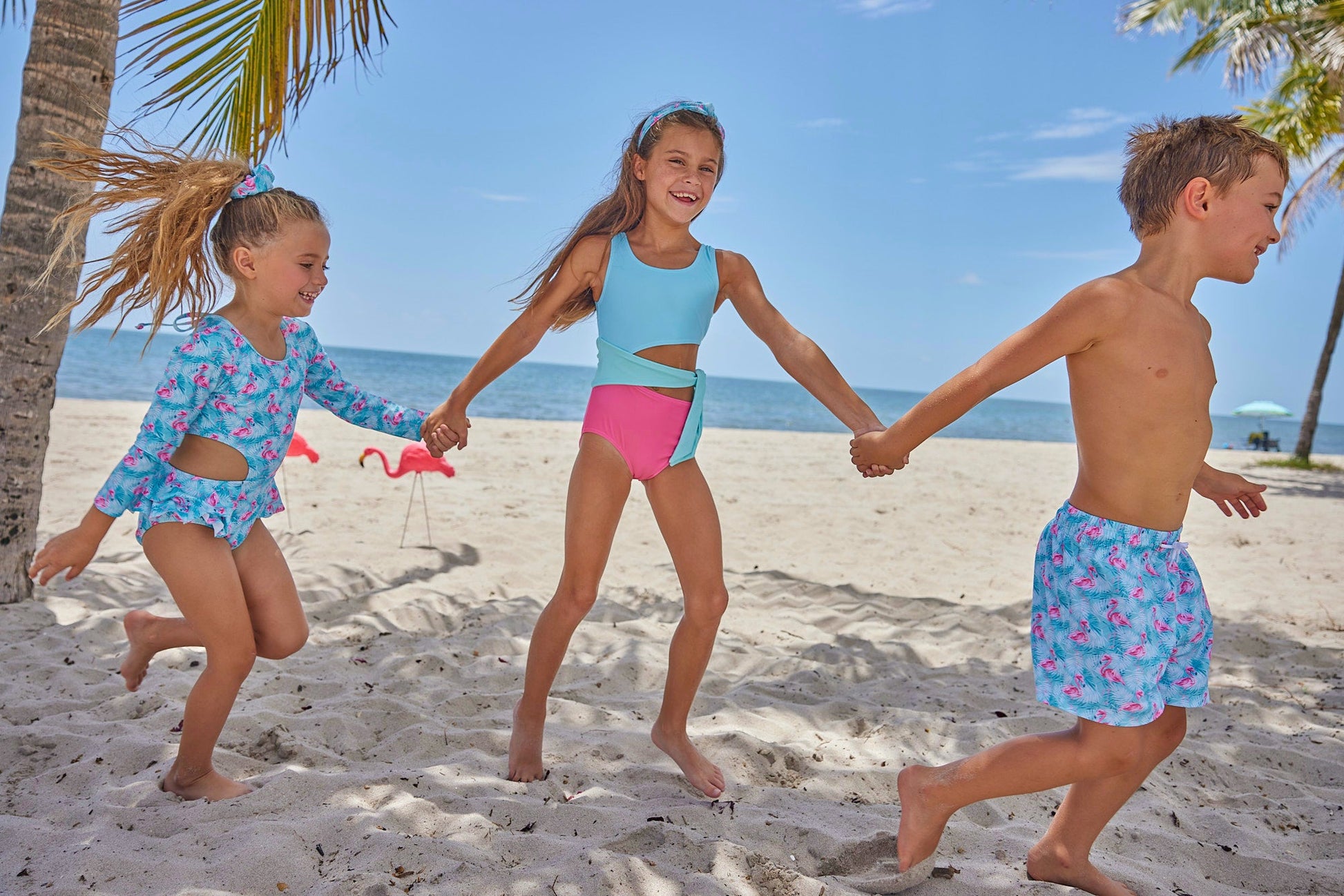 Style: Our must-have on trend one piece swimsuit was designed with a modern day retro chic vibe. This style features long sleeves accompanied by a mid cut-out with a double row of ruffles giving this swimsuit a contemporary yet unique look.