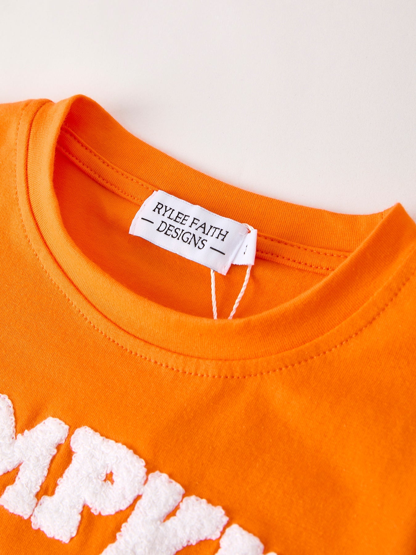 Bring some fall warmth to your little girl's wardrobe with the Halloween "Pumpkin Spice" Chenille Patch Girls Set. These colorful, textured patches add a warm, festive touch. Perfect for celebrating the season with charm and personality.