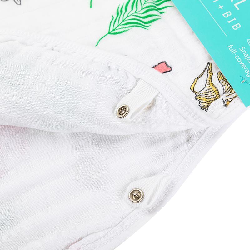 - Perfect transitional item. It can be used as a burp cloth in the early months, and then it snaps to convert into a full coverage bib once solid foods are introduced.