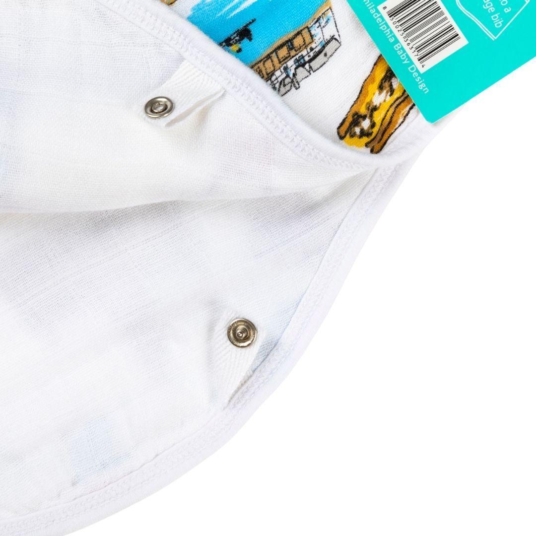 - Perfect transitional item. It can be used as a burp cloth in the early months, and then it snaps to convert into a full coverage bib once solid foods are introduced.