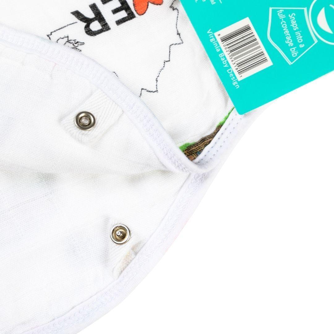 - Perfect transitional item. It can be used as a burp cloth in the early months, and then it snaps to convert into a full coverage bib once solid foods are introduced.