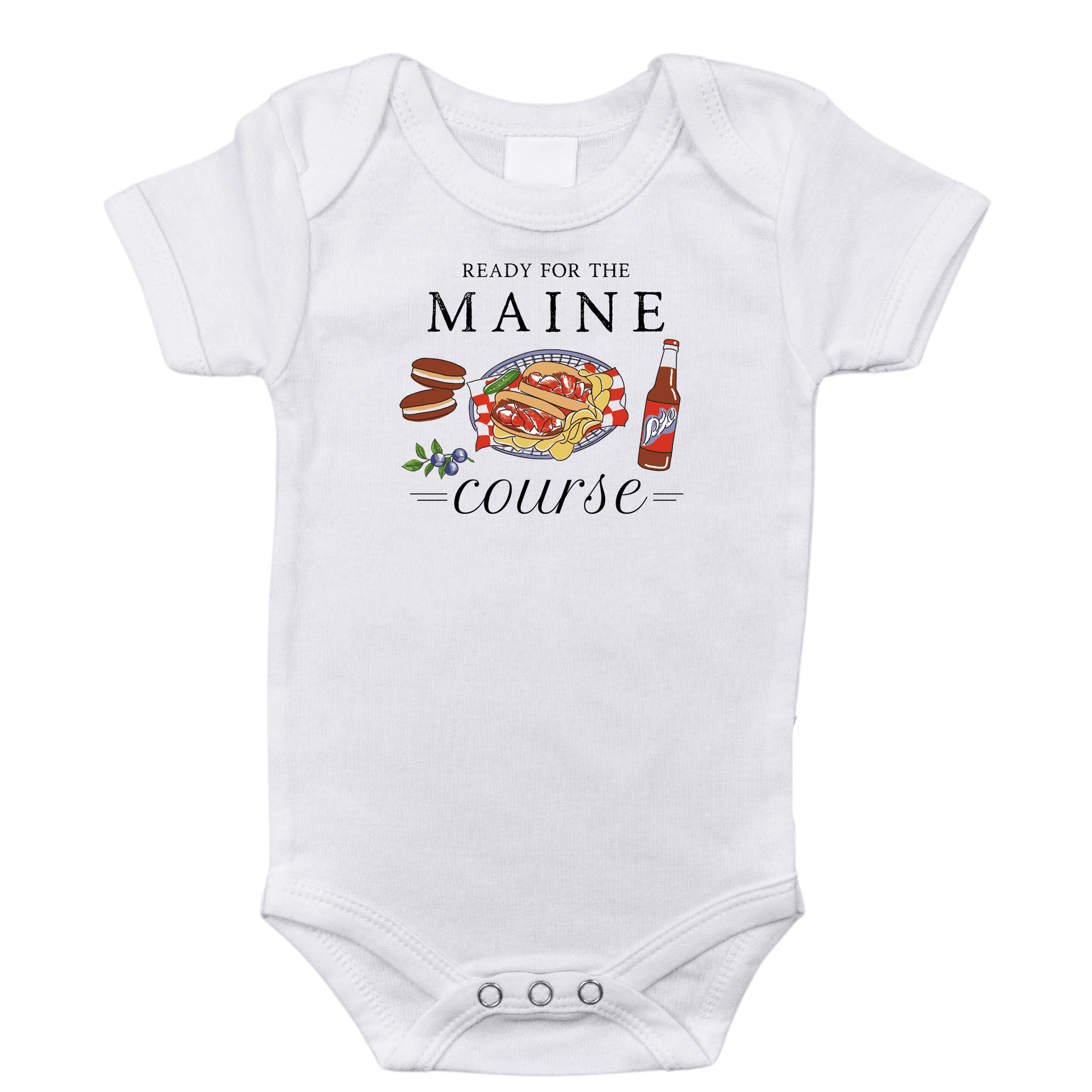 Whoopie! You'll love this future foodie onesie featuring some of Maine and New England's favorite foods