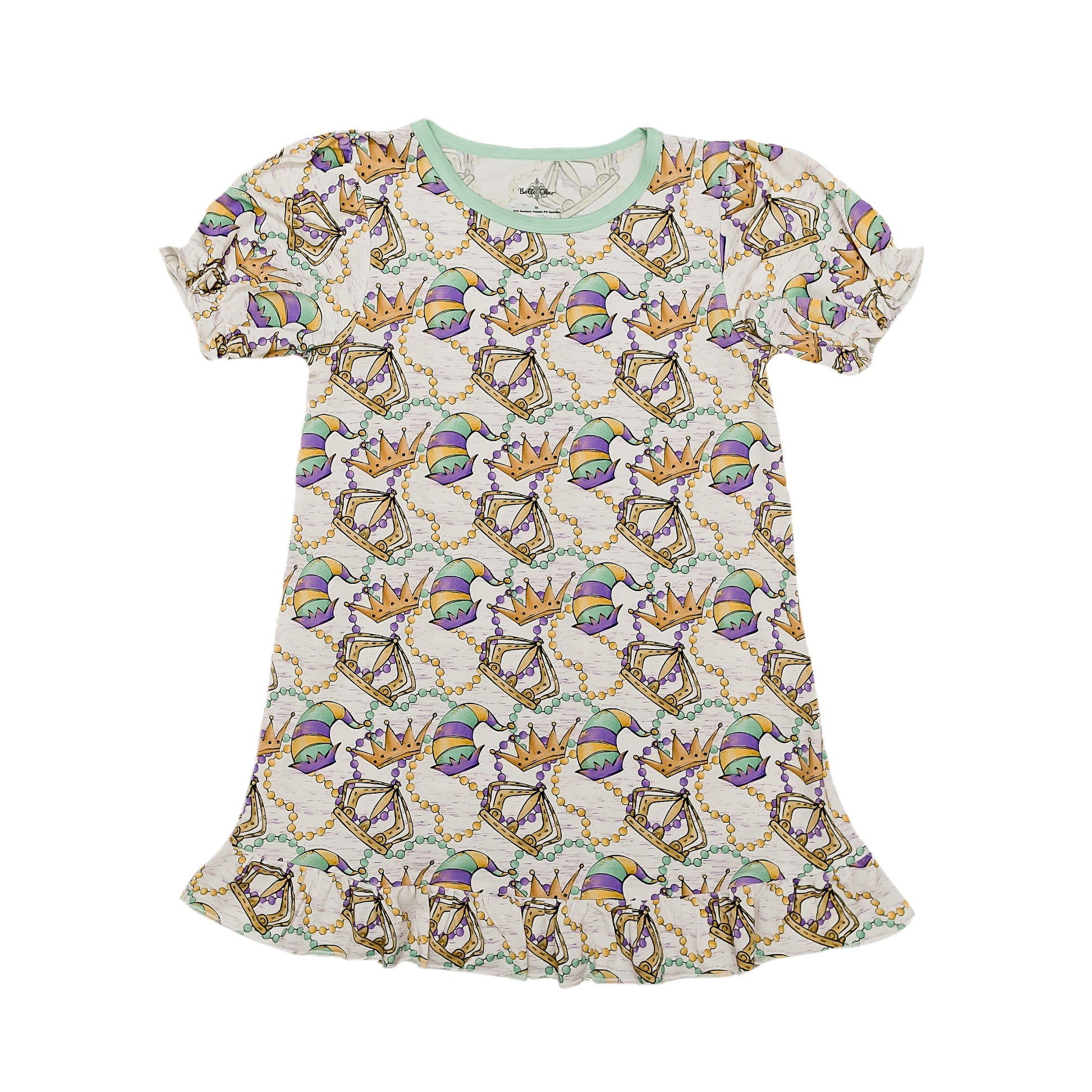 Let your little one celebrate in style with this Mardi Gras Royal Play Dress, crafted from buttery soft bamboo fabric that feels as luxurious as it looks. Featuring vibrant royal colors and festive details, this dress is perfect for parades, parties, or everyday adventures. The breathable bamboo material keeps kids comfortable all day long, while the playful design captures the magic and joy of Mardi Gras. Twirl, dance, and make memories in this show-stopping dress that's as fun to wear as it is to look at!