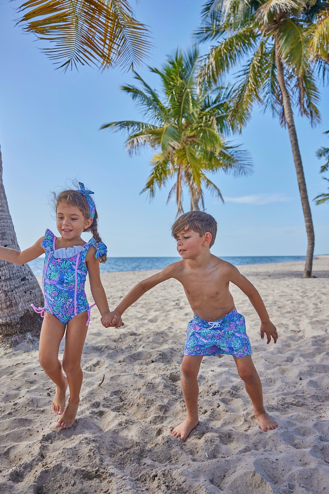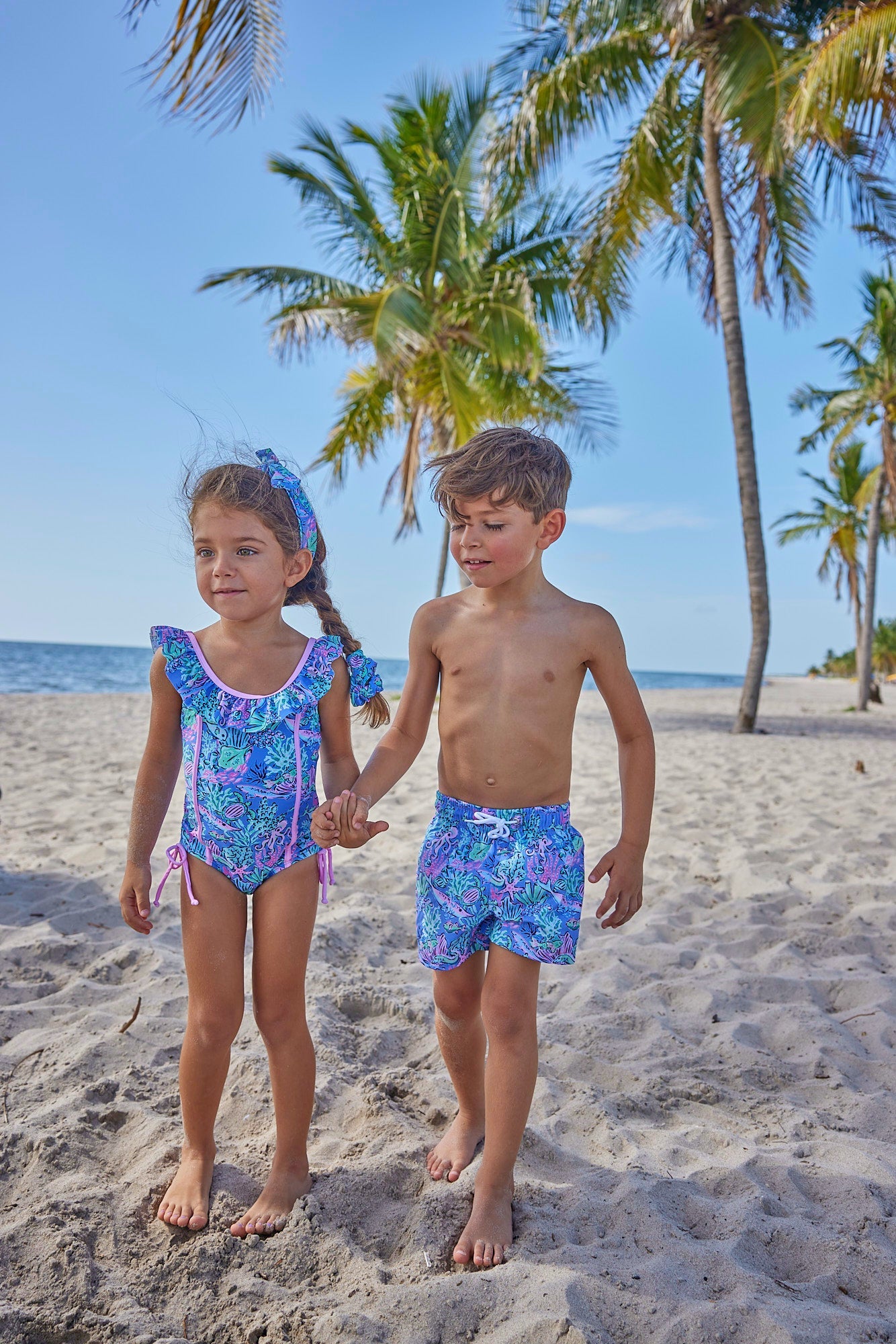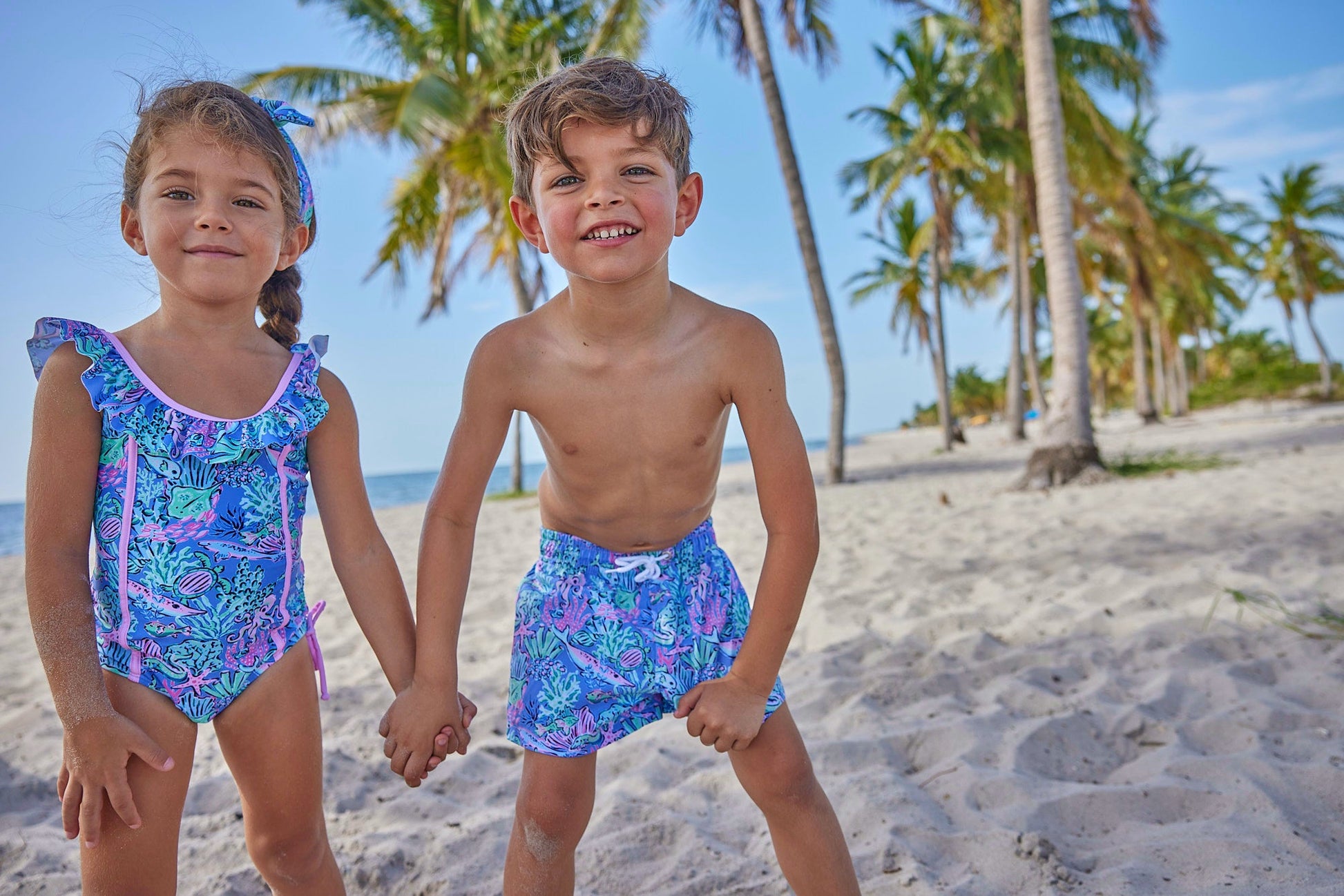 Style: Our classic swim trunks were designed with his comfort in mind. This style features an elastic waistline and includes a contrast drawstring to ensure the perfect fit.