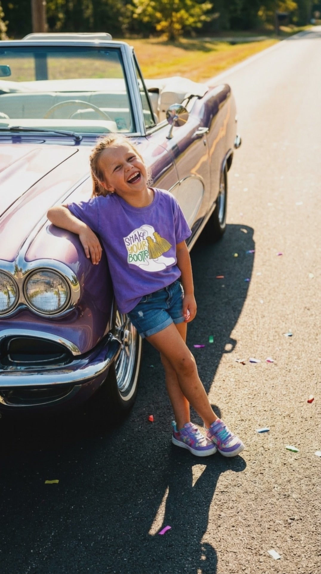 Get your little one ready to dance in style with our Shake Your Bootie Mardi Tee for toddlers, babies, and girls! Our whimsical design features Mardi Gras boots, perfect for spring celebrations and parades. Let your child's playful spirit shine with this unique and joyful tee. Tees are true to size.