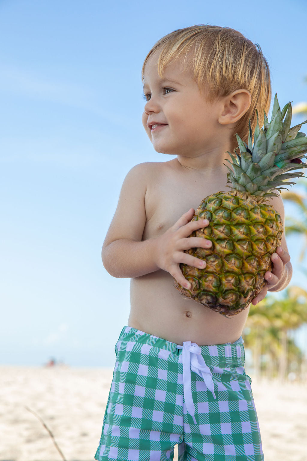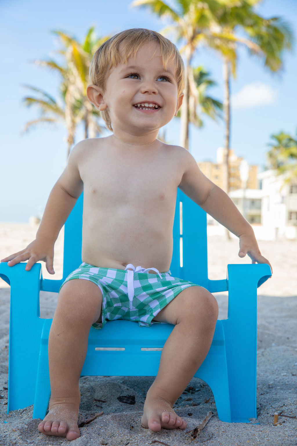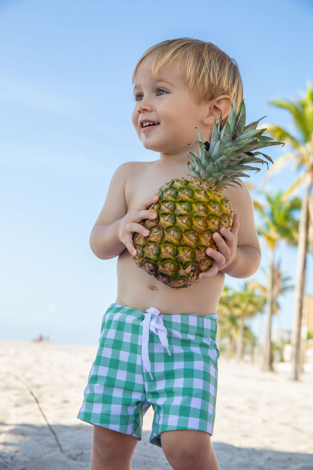 Print: The soft fabric is made with our resort style moss green check print which coordinates with many of our girl styles.