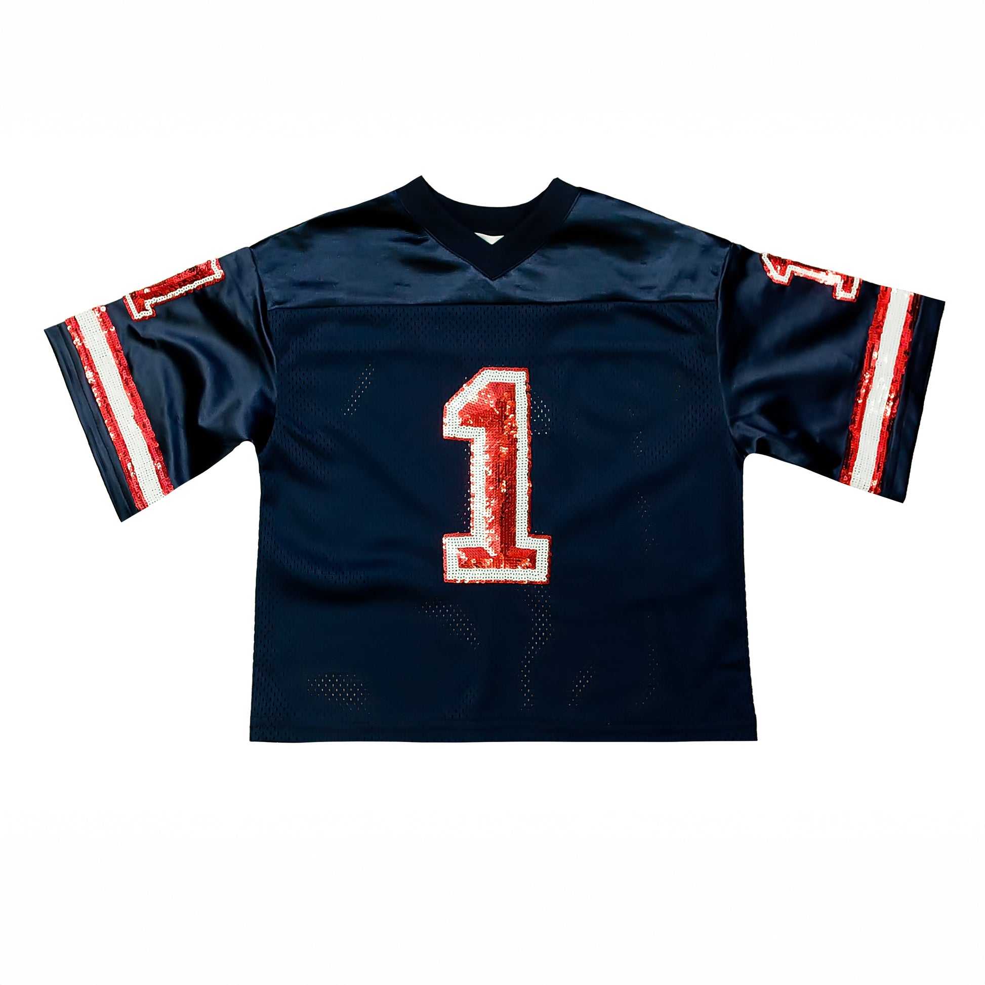 Bring fun and flair to your wardrobe with this Navy Blue and Red Sequin Jersey. Sparkling sequins in bold navy and vibrant red create a playful, eye-catching look perfect for parties or casual days when you want to shine. Comfortable and stylish, this jersey ensures you stand out with a lively, energetic vibe.