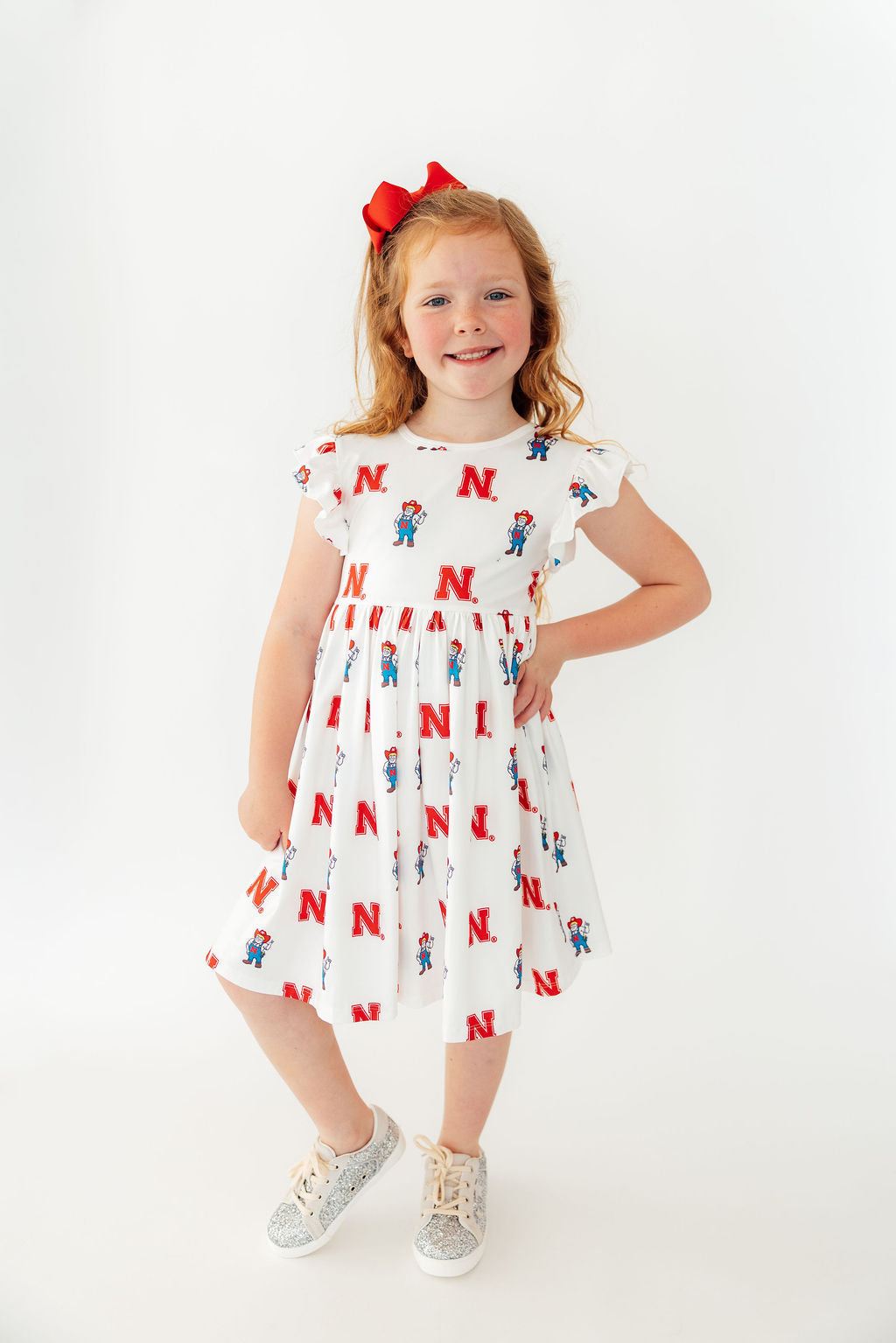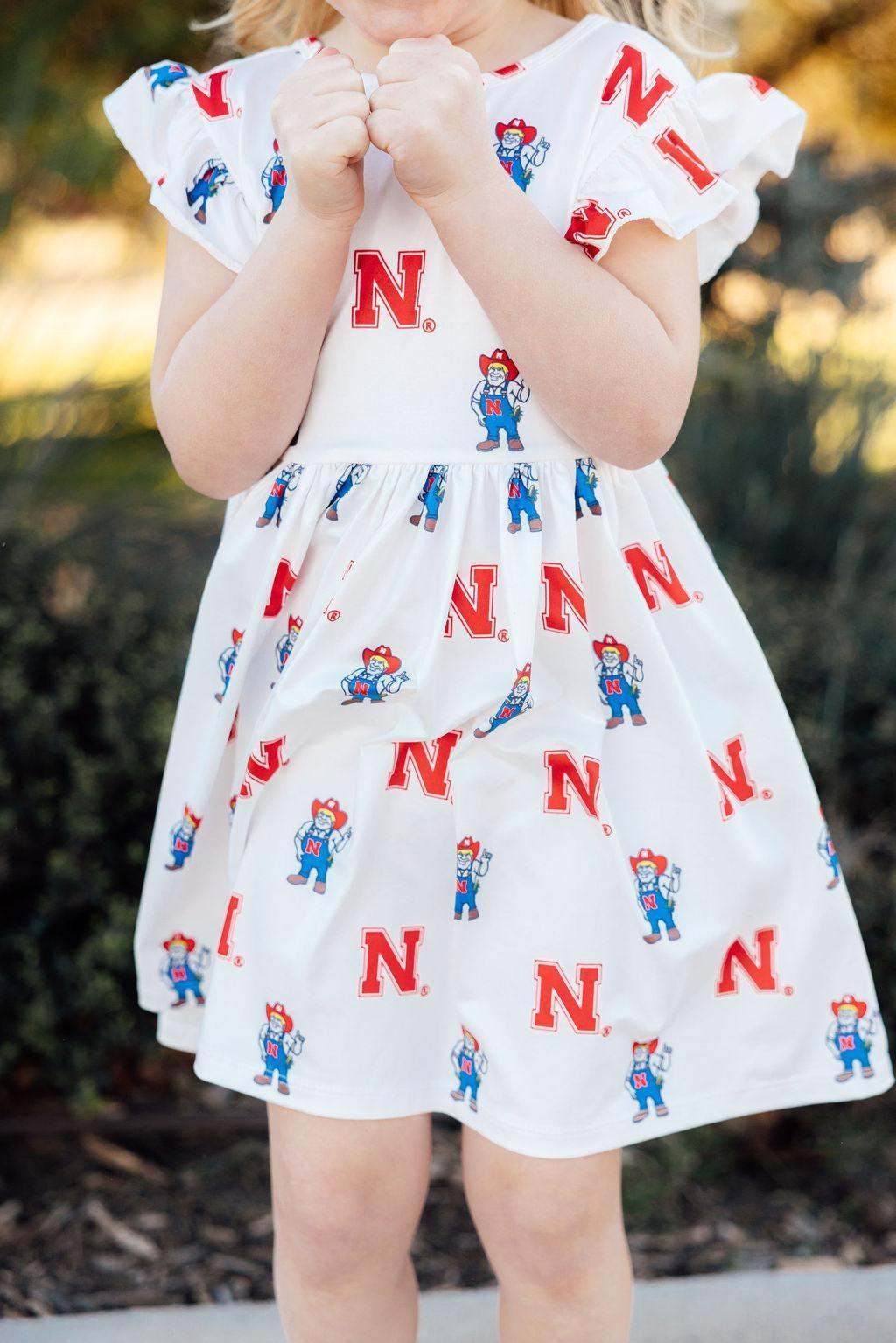 Nebraska White Herbie Husker Flutter Twirl Dress