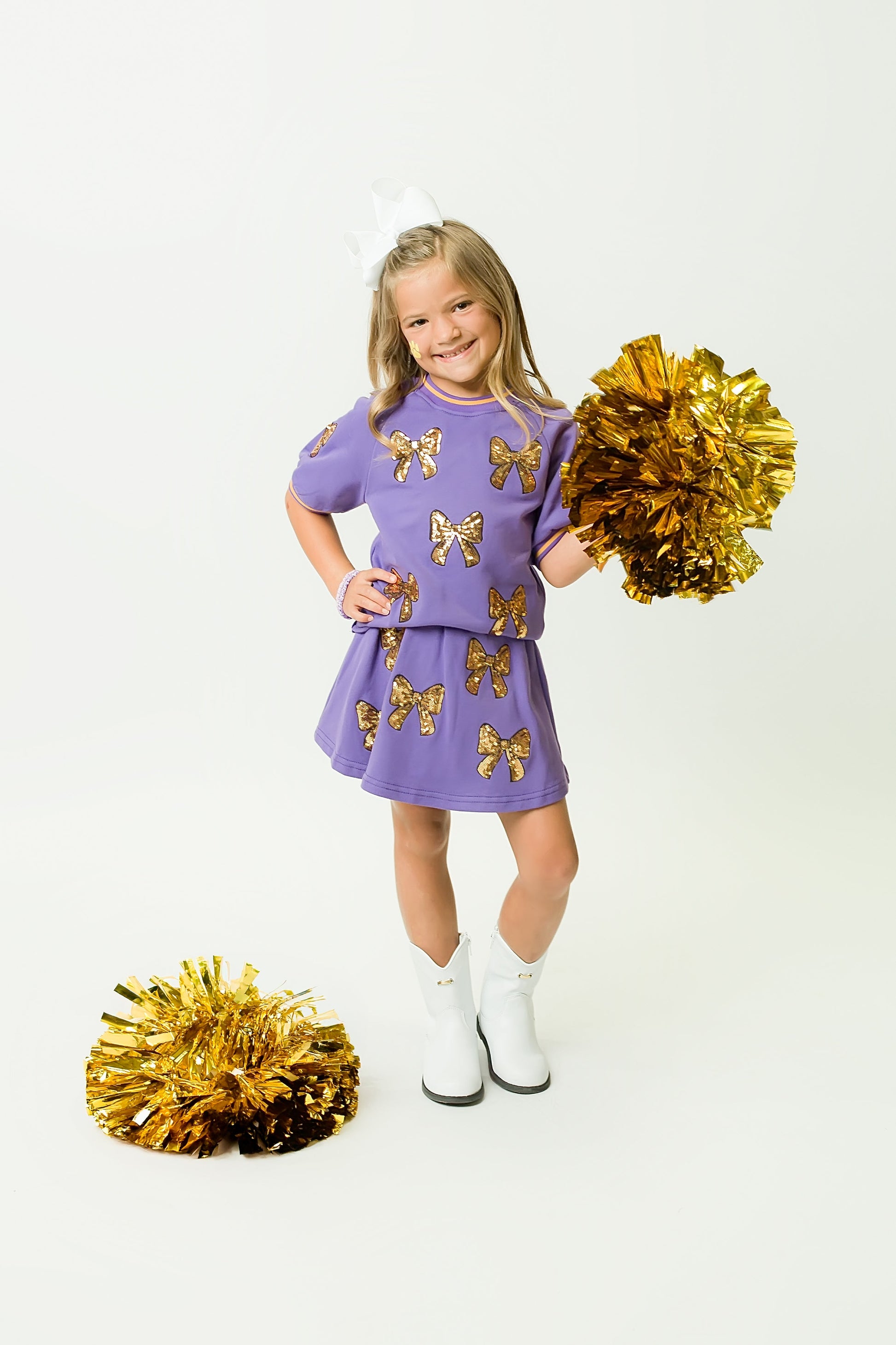 Bring a pop of fun to your look with the playful Purple and Gold Bows Top! Adorned with charming bow details and vibrant colors, this top adds a lively touch to any outfit. Soft and comfy, it’s perfect for mixing, matching, and spreading cheerful vibes all day long!