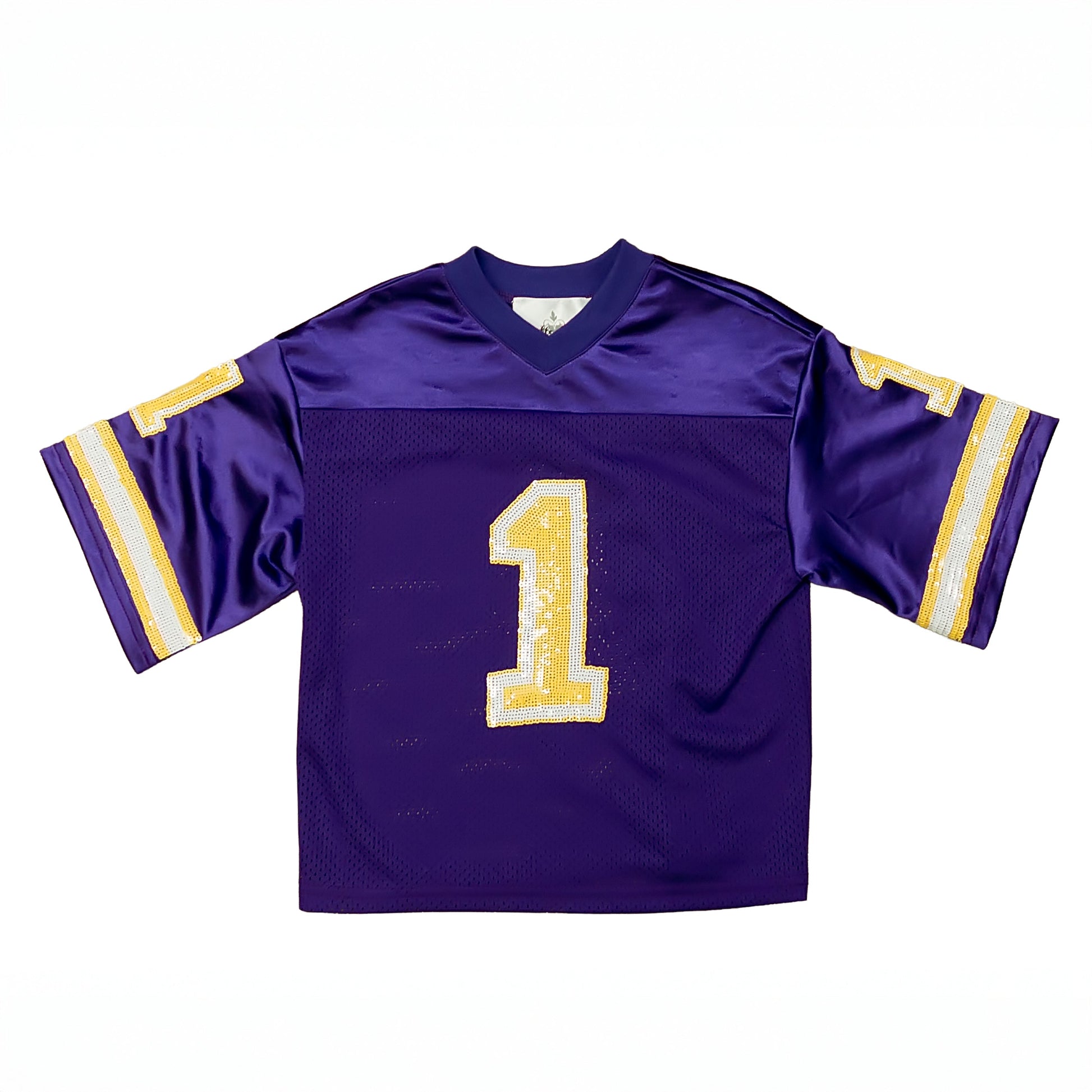 Let your little one sparkle with this Purple and Yellow Sequin Kid Jersey. Featuring bright purple and sunny yellow sequins, it offers a playful and vibrant look perfect for parties, dress-up, or everyday fun. Comfortable and eye-catching, this jersey will keep your child shining with joyful energy wherever they go.