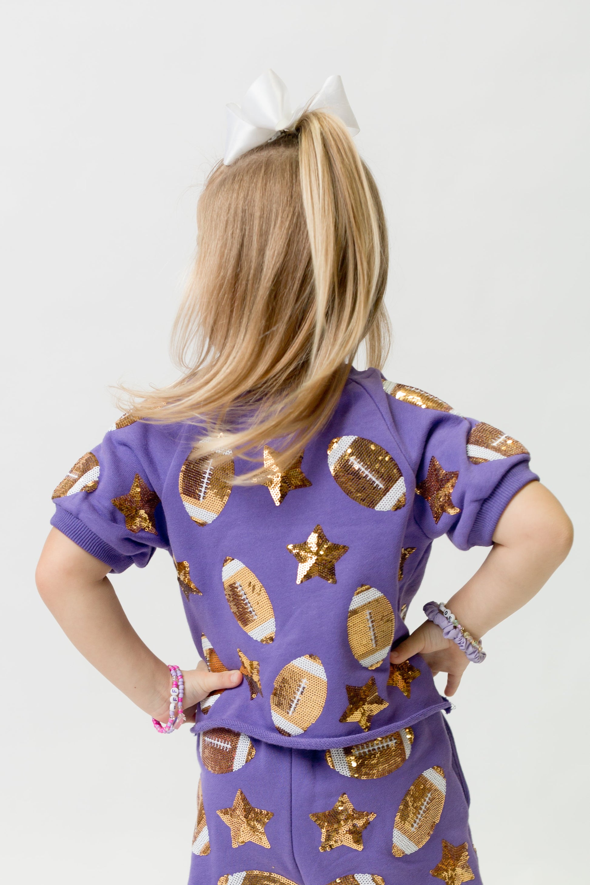 Make your mark with this playful purple football top! Lightweight and comfy, it moves with you while adding a vibrant pop of color to your sporty style. Perfect for having fun and staying cool on game day.