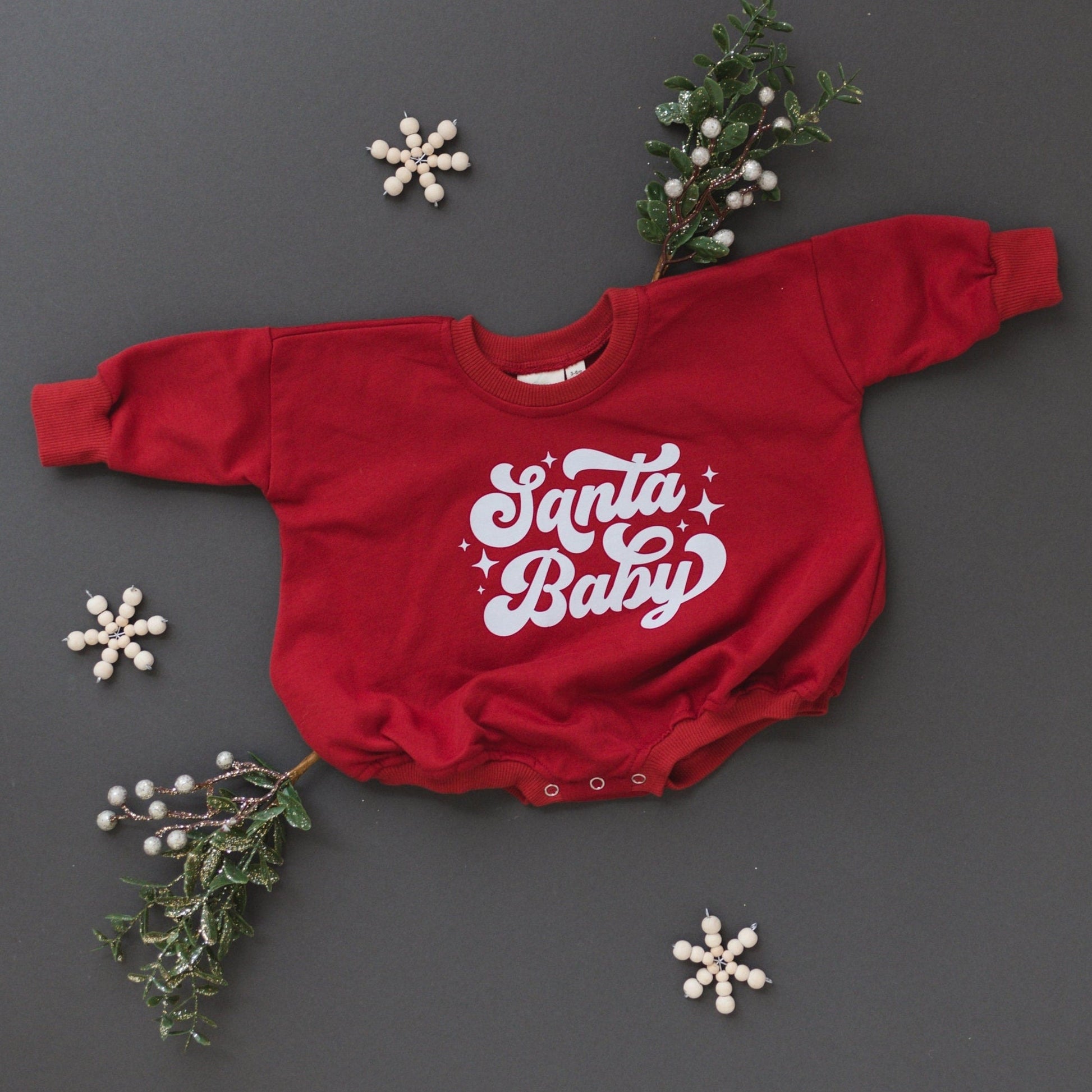 Get your little one ready for the holidays with our Santa Baby Sweatshirt Romper! This oversized romper is designed with a festive "Santa Baby" graphic that adds a touch of holiday cheer to your baby’s wardrobe. Made from lightweight terry material (83% cotton, 17% polyester), this romper is perfect for staying cozy and comfortable during holiday festivities. The convenient snaps at the crotch make diaper changes a breeze, while the relaxed, oversized fit offers plenty of room for layering or just lounging around.