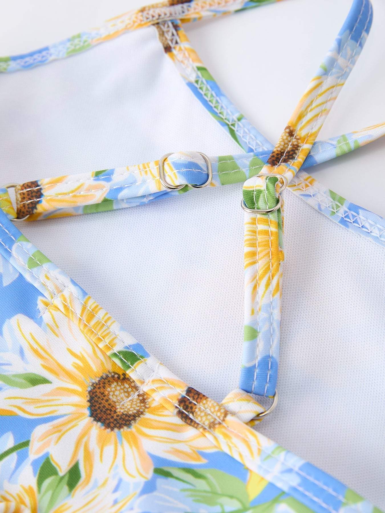 Summer Sunflower Gingham Girls Two-Piece Swimsuit
