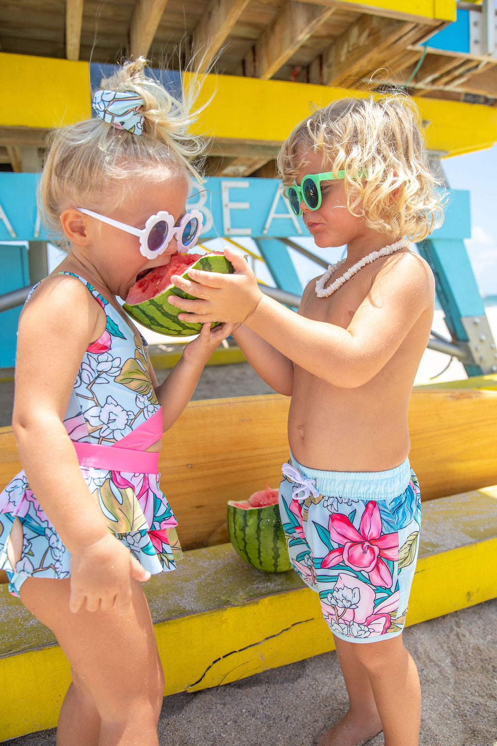 Style: Our classic swim trunks were designed with his comfort in mind. This style features an elastic waistline and includes a contrast drawstring to ensure the perfect fit.
