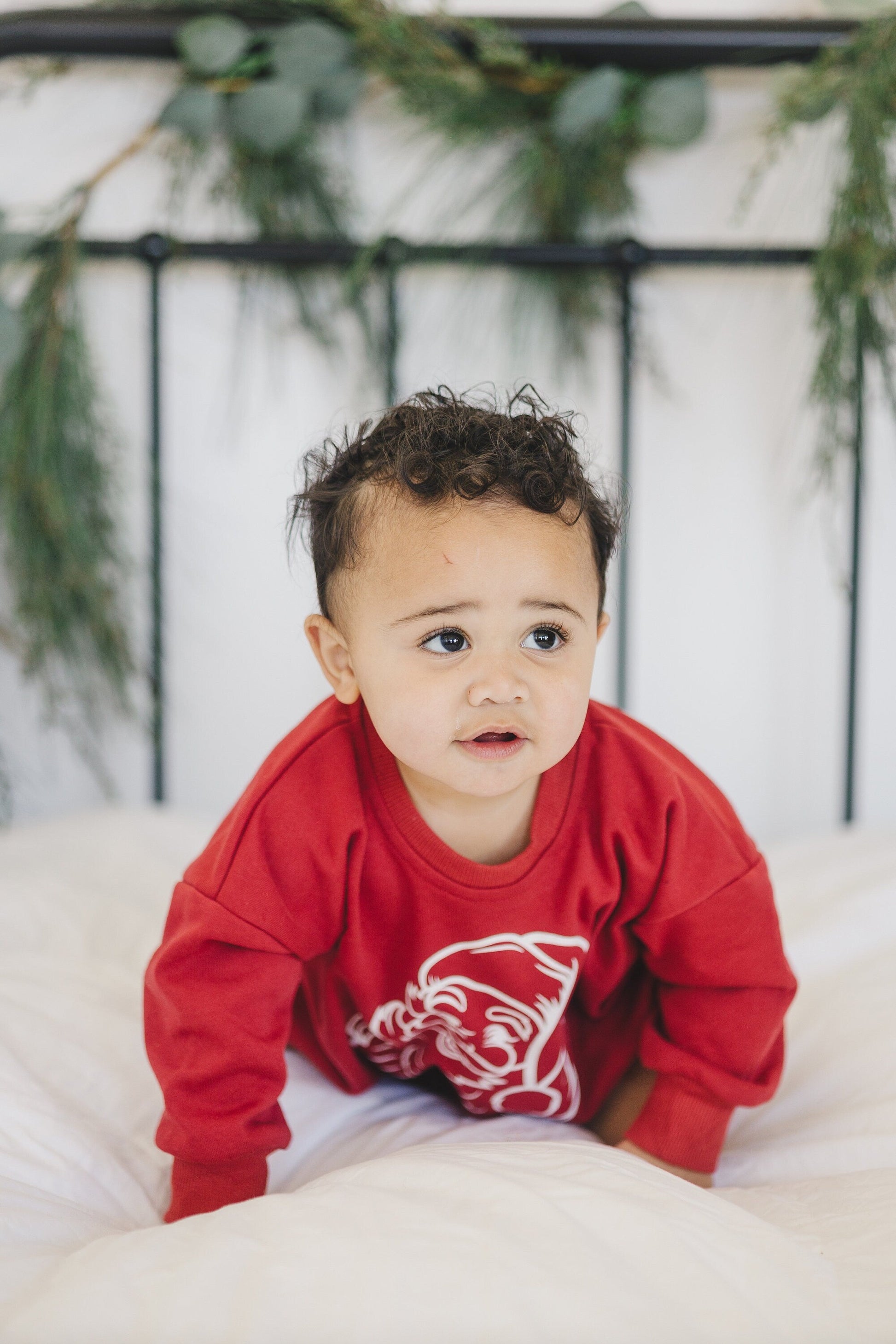 Vintage Santa Graphic Sweatshirt Romper - Red